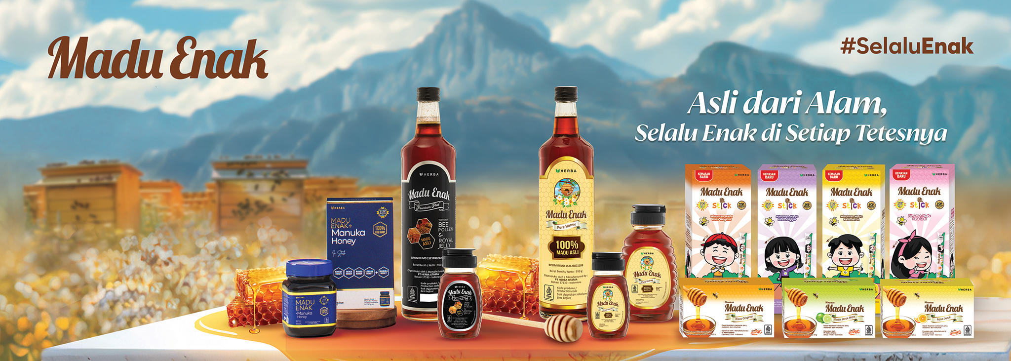 Terinspirasi oleh kekayaan alam Indonesia yang selalu memberikan kebaikan, Madu Enak berkomitmen menghadirkan 100% produk natural berkualitas tinggi dengan cita rasa otentik dan kaya akan manfaat untuk menemani setiap aktivitas Keluarga Indonesia yang peduli akan kesehatan, keaslian, dan mendukung peternak lebah lokal yang berkelanjutan.